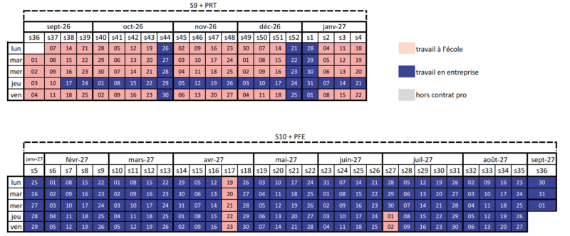 Calendrier prévisionnel de l’alternance 2026-2027